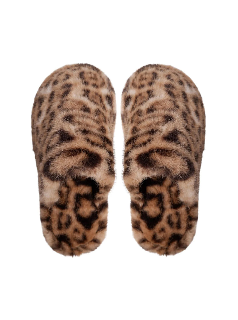 Soft and comfortable slippers in lovely imitation leopard fur.