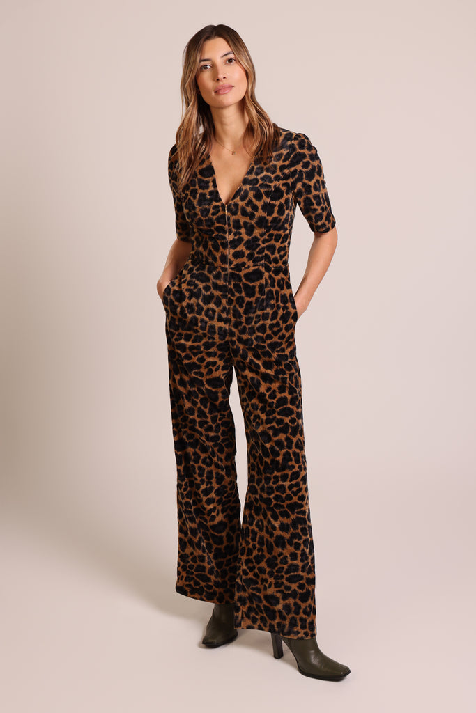 Traffic PeopleTraffic People Clan Jumpsuit - LeopardJumpsuit with short sleeves. V neck with front zip fastening. Slip side pockets.