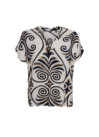 Summum Woman Denim Pussy Bow Blouse with Lurex - Denim