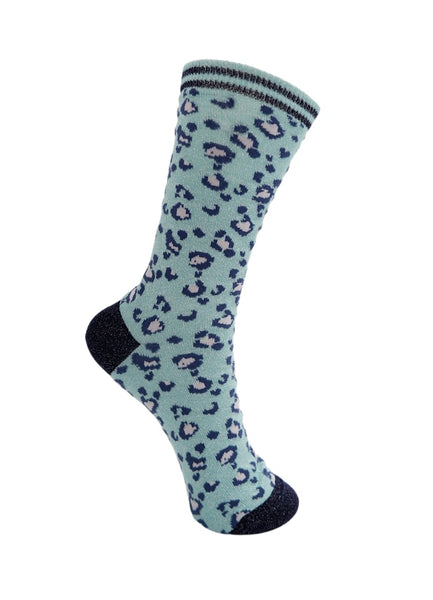 Soft cotton blend glitter socks with leo design. Keep your feet dry and comfortable.