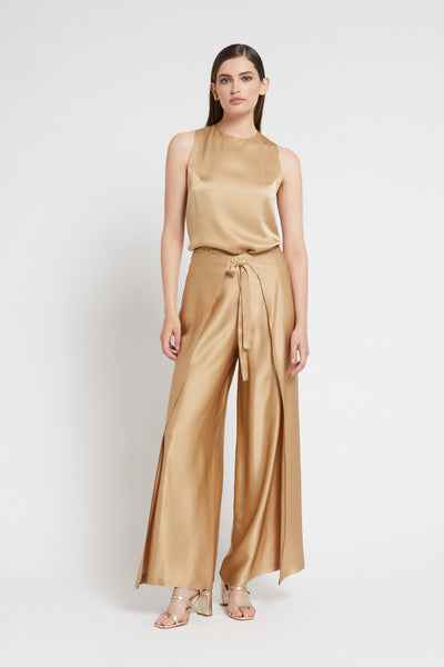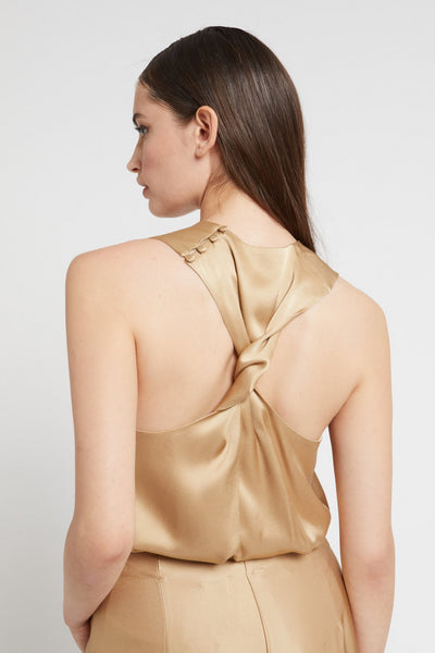 Ottod'Ame Satin Flowy Top with Knot Back - Sabbia (Gold) £47.00 £119.00